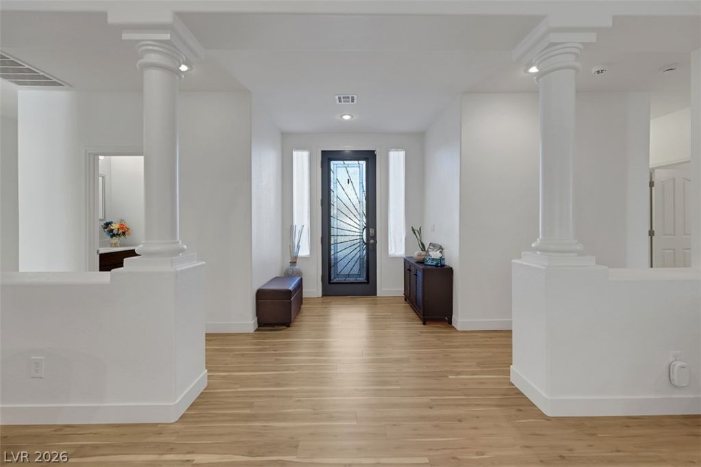 Beautifully well-maintained and tucked away at the end of a cul-de-sac, this spacious 2,276 sq ft home sits on a 9,148 sq ft corner lot and offers 4 bedrooms or 3 bedrooms plus a den/office for flexible living. Inside, easy to maintain luxury vinyl plank and tile flooring throughout with no carpet, along with shutters on every window for a polished finish. The kitchen features stainless steel appliances, a double oven, and a bright breakfast nook. The primary suite includes two closets, providing generous storage. Additional highlights include a separate laundry room and a 3-car garage. The backyard is perfect for relaxing or entertaining with a large covered patio and above-ground swim spa, while solar panels help enhance energy efficiency. A wonderful combination of comfort, space, and location.