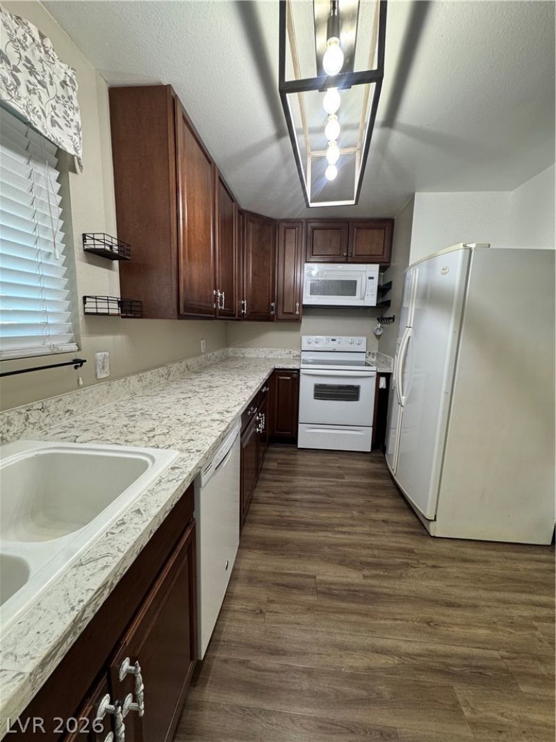 Welcome to 1303 Darlene Way Unit 101B in Boulder City, a beautifully updated condo offering comfortable living in one of Southern Nevada's most charming communities. This well-maintained unit features upgraded cabinetry, elegant quartz countertops, and stylish flooring installed in 2023, creating a fresh and modern feel throughout the home. The main floor ceilings have been newly textured with a smooth finish, adding a clean, contemporary touch to the living space. The functional layout provides bright, inviting areas perfect for everyday living and entertaining, along with a patio ideal for relaxing mornings or peaceful evenings. The complex has a community pool. Conveniently located just minutes from historic downtown Boulder City, easy access to local parks, dining, shopping, and outdoor recreation, with Lake Mead & Hoover Dam only a short drive away. This move-in-ready condo offers the perfect blend of modern updates and is PRICED TO SELL!